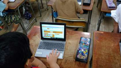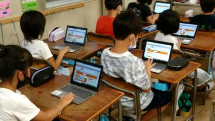 2年生が、一人一台タブレットを使って、心の天気を登録していました。2年生にとって難しい操作もありますが、ひとつひとつていねにに確認しながら繰り返し実施しています。