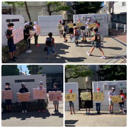今日19日は食育の日です。 6年生の給食委員会の児童が、朝正門前に立って呼びかけをしました。