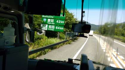 北近畿豊岡自動車道を走行中です。子どもたちは、音楽鑑賞中です。