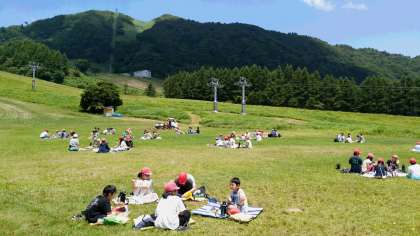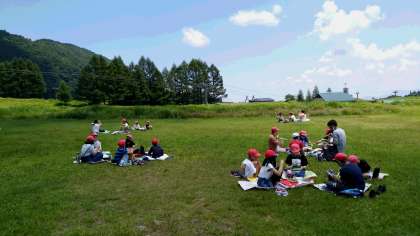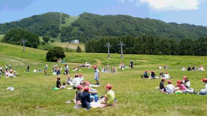 1日目の昼食は、高原でお弁当です。高原らしいさわやかな風が吹く中、おいしくいただきました。