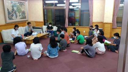 今日のプログラムは、すべて無事終えることができました。全員元気です。室長さんは、部屋の人に、注意事項や明日の確認事項を伝える仕事が残っています。もうひとがんばり!