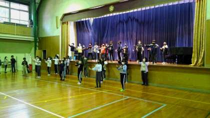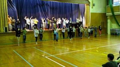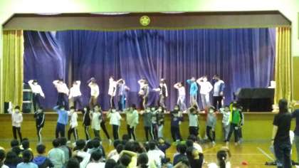 各クラスが、それぞれに練習してきたスタンツを体育館の舞台で披露しました。