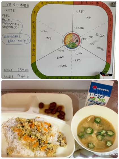 この献立は、個別対応献立【鶏卵】なので、卵アレルギーのある児童は卵が入っていないものを食べました^^