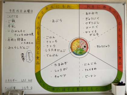 今日の【月見の行事献立】はとても人気があったようで、どのクラスも全てのおかずが空っぽになって返ってきました^^