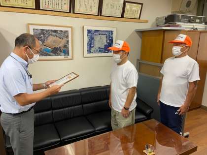 いつも登下校をはじめ、新森小路小学校の子どもたちの安全を見守っていただいている「新森地域子ども安全パトロール隊」が旭区より「旭わがまちお宝」として認定されました。今日、校長室で学校が旭区にかわってお渡しすることができました。