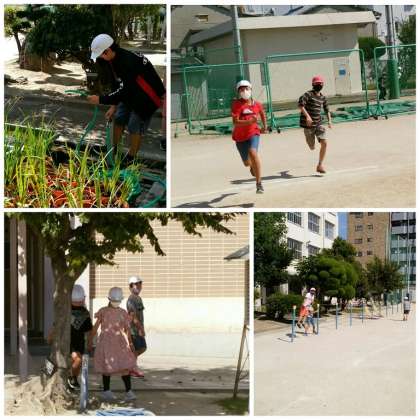 今日は10月とは思えないくらい暑い一日ですが、子どもたちは、元気に運動場を駆け回っています。みんな遊びをしている学級もあれば、水やりをしている栽培委員会の人も見かけました。