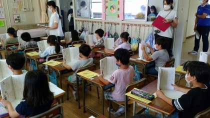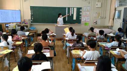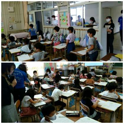 1年生で校内の研究授業を行いました。国語科の「サラダでげんき」という単元です。たくさんの先生が参観する中、子どもたちはしっかと話を聞いたり、自分の意見を発表したりするなど、集中して学習に取り組んでいました。講師の先生にも参観いただいて、放課後、授業についてご指導いただきました。