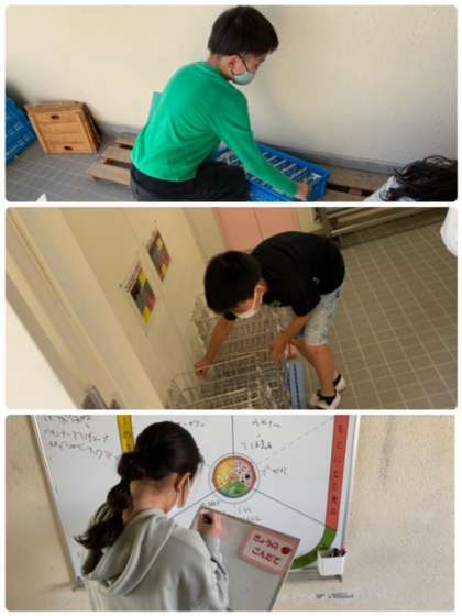今日は5年2組の給食委員会の児童がそれぞれに、自分の仕事をこなしていました。