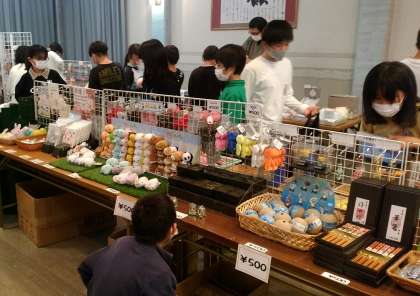 みち潮さんでお土産を買っています。1クラスずつ交代で買い物をしています。他のクラスはお風呂に入ったり、部屋でゆっくりくつろいだりしています。