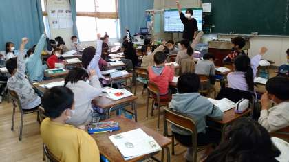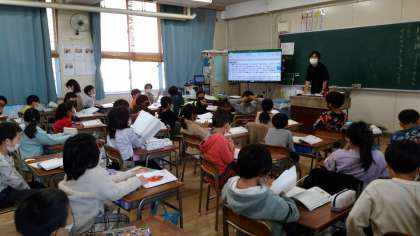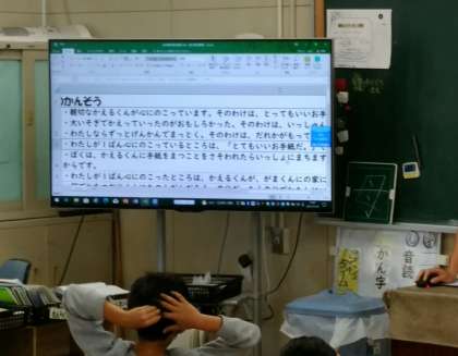 2年生の国語科の学習の様子です。「お手紙」という題の物語文を読んだ初めの感想を発表し合い、友達の感想についてどう思うか交流していました。この教材を学習し終えたときに今の感想にどんな変化があるのか楽しみです。