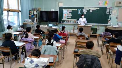 生江小学校の小西栄養教諭にきていただいて、「ほねやはをじょうぶにしよう」という学習をしていただきました。カルシウムの働きやカルシウムを多くふくむ食材などを勉強しました。小西先生ありがとうございました。