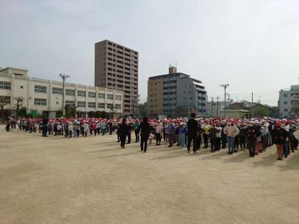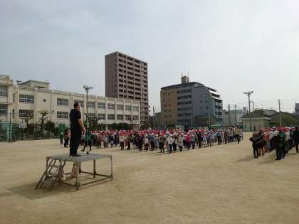 今年度初めての児童朝会でした。きちんと並んで「おはようございます!」と元気なあいさつができました。