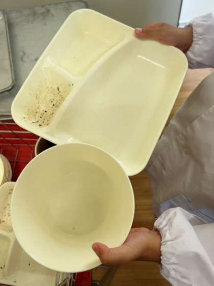 片付けの時間。食べたあとの食器がとてもキレイな児童をみつけました。
