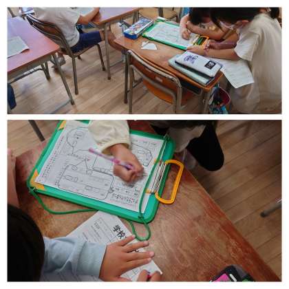 2年生が学校探検の準備をしていました。1年生を案内できるように、特別教室などの場所をしっかりと確認して準備をすすめていました。