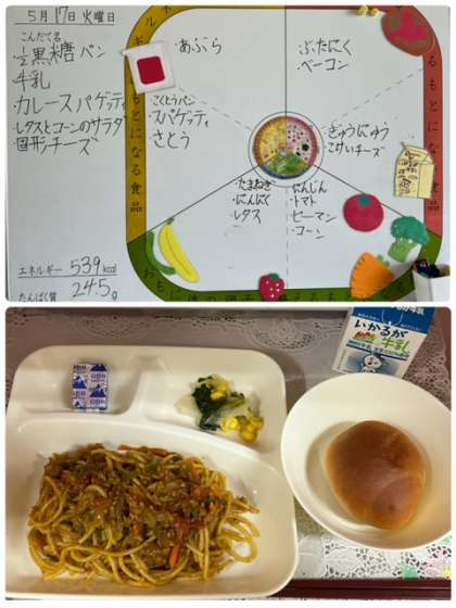5月17日(火) 今日の給食〜カレースパゲッティ