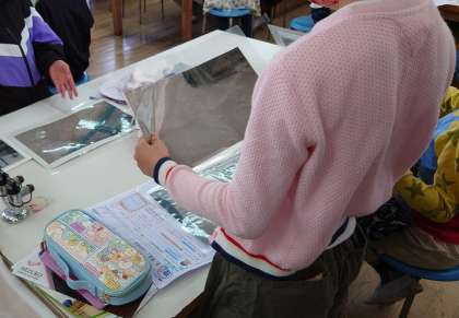 4年生の理科の学習の様子です。地面を流れる水がどのように流れていくかを学習しています。写真を見て自分たちの予想をたてていました。予想を立てて学習にのぞむのは、理科の学習にとってとても大切です。