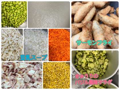 具材にベーコン・じゃがいも・たまねぎ・コーン・にんじん・むきえだまめを使用したスープです。ベーコンをからいりしてうま味と香りを出し、豆乳を加えることにより、栄養満点でまろやかに仕上げています。
