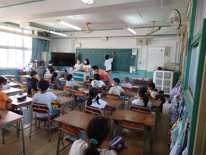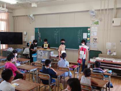 今日はにじいろ集会が1学期の最終日でした。班長を中心に、1学期の活動の反省をしていました。6年生が進行をつとめ、話し合いをしっかりと進めていました。他の学年の人も、班長の話を聞き、自分の反省をはっきりと発表している人もいました。2学期も、いろんな学年の人が仲良くなる集会でありたいですね。