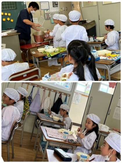 1年1組さん、最近は完食できる子やおかわりする子も増えてきて、全ての食缶がからっぽになる日も多くなってきたそうです。すばらしい!!