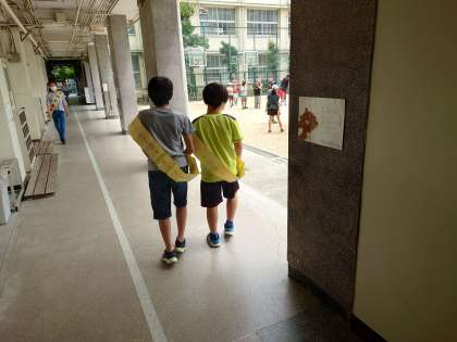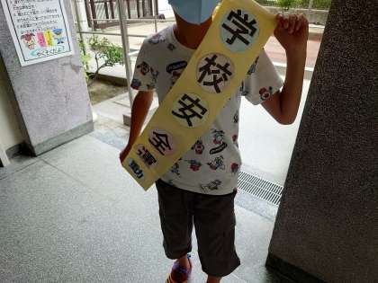 今週は学校安全週間でした。児童会が中心となって、「ろう下・階段の右側通行」を目標にして、学期に1回、学校安全週間として、校内で全体の児童に呼び掛けています。たすきをかけた児童会の人たちが、休憩時間に呼び掛けている様子です。学校の安全を守るために、がんばってくれています。