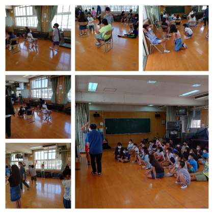 4年生が、インプロの出前授業をうけました。インプロとは、「即興」という意味で、即興の表現活動やゲームを通して、自分の思いを、自分の伝え方で安心して伝え合い、豊かな表現、対話を実現していくという活動です。最初は恥ずかしがっていた子どもたちも1時間の学習活動の中で、思い切り楽しそうに活動するようになっていました。放課後には、インプロの進め方を、教職員にも教えていただきました。明日からでもすぐに活用できる内容でした。講師の鈴木聡之先生、ありがとうございました。