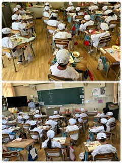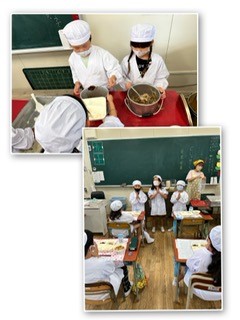 食物繊維などの栄養素が豊富に含まれる豆は、児童に積極的に摂ってもらいたい食品の1つです。今日は釜でじっくりと柔らかくなるまで煮た金時豆を、砂糖・塩こいくちしょうゆで味付けしています。ホクホクして味が染みた豆は子どもたちにも好評でした^^