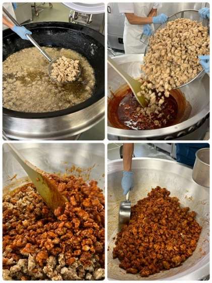 鶏肉にしょうが汁・にんにく・料理酒で下味をつけて揚げ、料理酒・みりん・こいくちしょうゆ・ケチャップ・コチジャンを合わせて作った甘辛いタレをからませています。子どもたちにも大好評でした^^