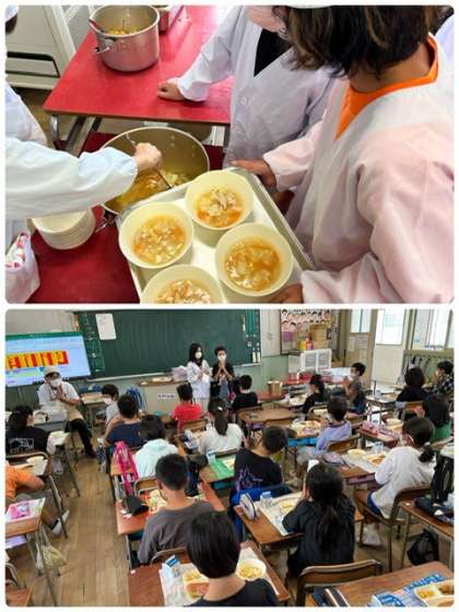 鶏肉を主材にじゃがいも・たまねぎ・にんじん・コーン(冷)、青みにパセリを使用した洋風の汁物でした。鶏肉のうま味と野菜からでる甘みが相まってとてもおいしく仕上がっていました。