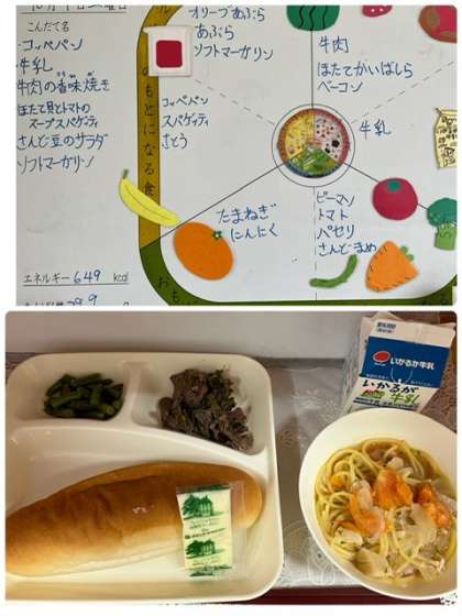 10月7日(水) 今日の給食〜ほたて貝とトマトのスープスパゲッティ