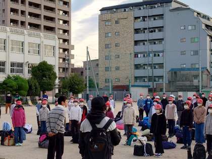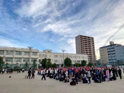秋晴れのもと、林間学習が始まりました。今日から一泊二日、5年生みんなで協力して、楽しい林間学習を過ごしてきます。