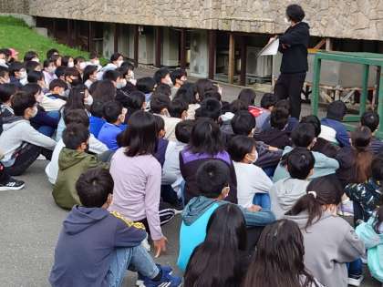 林間学習二日目が始まりました。体調をくずす子もなく、みんなそろって朝会に参加できました。これからの予定をしっかり確認して、一日のスタートです。