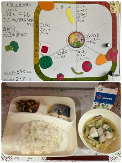 今日の給食は、健康的な食生活を送るために必要とされる和の食材、