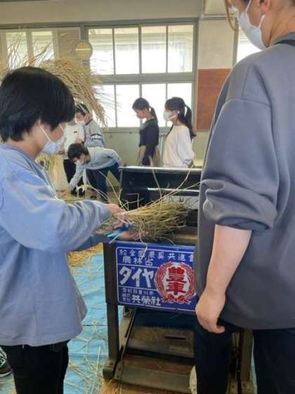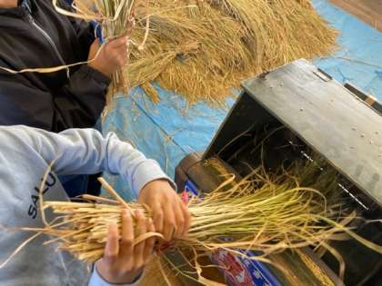 初めて使う脱穀機に苦戦しながらも、安全にしっかり取り組むことができました。農家の方の大変さ、米づくりの難しさを実感することができました。