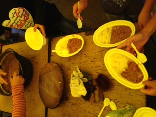 2日目の昼食は飯ごう炊さんです。グループで協力してカレーライスを作りました。野菜や肉を切ったり、火をおこしたりしました。自分たちで作ったカレーライスはとてもおいしかったです。