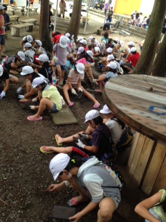 焼き板づくりをしました。古たおるで炭を落として、ペイントで色を付けたり、かざりつけをしたりしました。できあがりは戻ってからのお楽しみにしてください。