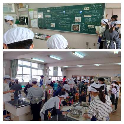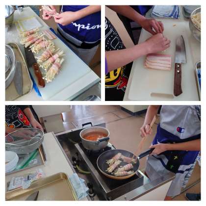 6年生の調理実習の様子です。野菜のベーコン巻きを作っていました。役割分担をして手際よく作業を進めることができました。