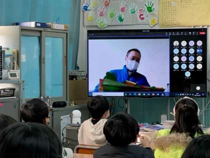 今日のにじいろ集会は1月24日〜1月30日の全国学校給食週間にあわせて、給食委員会の児童が発表を行いました。調理員さんへのインタビューコーナーの後、各クラスが感謝の気持ちを込めて作ったメッセージを渡しました。
