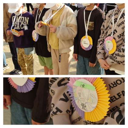 今日の児童集会は、新森冬まつりの表彰を行いました。児童会で作成したメダルを上位3チームに渡しました。表彰されたチームは、ていねいに作られた素敵なメダルをもらってうれしそうな表情でした。