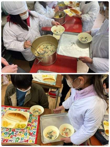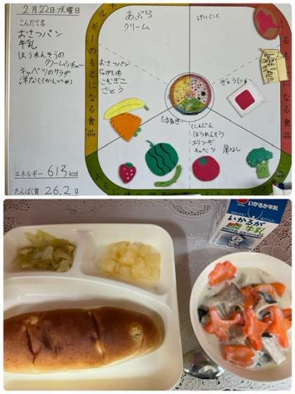 今日は子どもたちにも毎回好評なクリームシチューが登場しました。