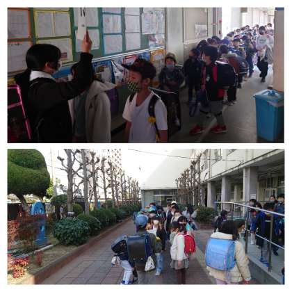 今日は地区別集会が行われ、地区別班での下校となりました。本年度最後の地区別集会です。班でまとまって安全に下校できました。班長、副班長は1年間お疲れさまでした。