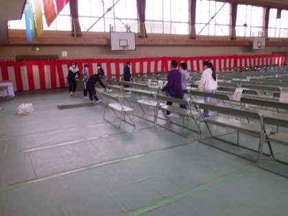 4月6日(木)新6年生のみなさんが明日の入学式の準備で登校してくれました。体育館の準備をしてくれています。