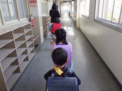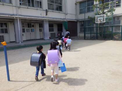 4月11日(火)本格的に1学期がスタートしました。1年生は元気に頑張りました。帰る用意をしています。