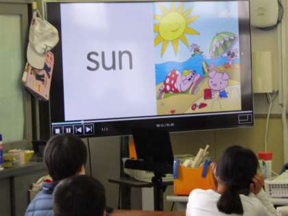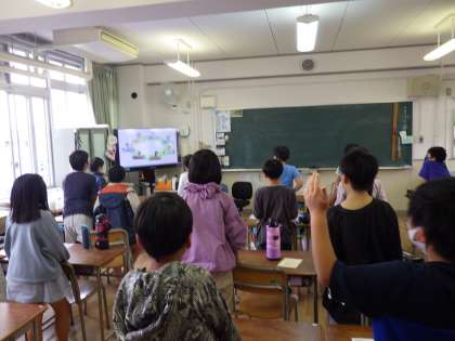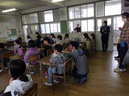 4月13日(金)英語の公開授業を5年1組で行いました。多くの先生が参観しています。