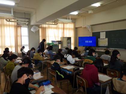 4月18日(火)6年生は全国学力学習状況調査です。最後まであきらめずに頑張りました。写真は生徒質問紙に答えています。