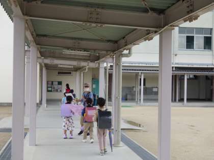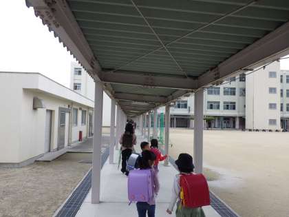 4月19日(水)地区別集会・集団下校を行いました。6年生は体育館へ1年生を迎えに行っています。