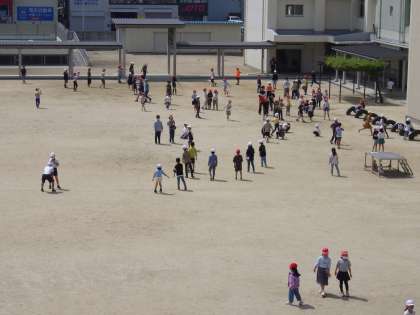 今日は暖かく少し暑くなるようです。子どもたちは元気に遊んでいます。