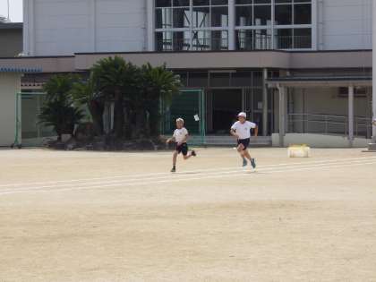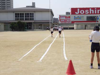 4月21日(金)5年生は体育で50m走の測定です頑張っています。