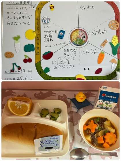 今日のビーフシチュー、ラッキーにんじんもたくさん入っていて、子どもたちにも大人気でした。