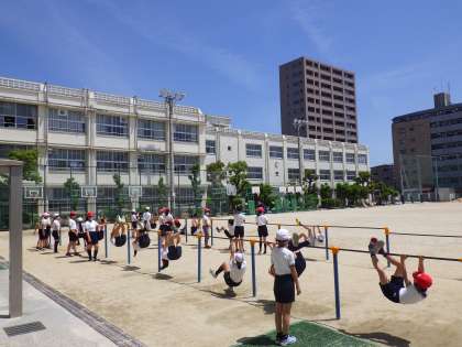 5月9日(火)6年生の鉄棒、3年生は50m走の測定です。