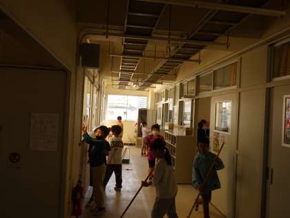 5月9日(火)給食が終わり全員一斉の掃除が始まりました。頑張っています。